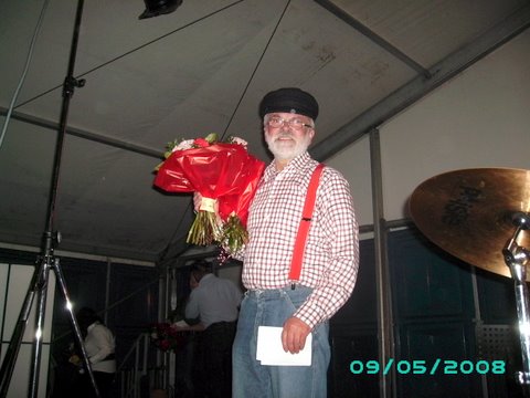 Anita (sopraan) + Flip tijdens concertmiddag. (30 jaar dirigent in 2008)