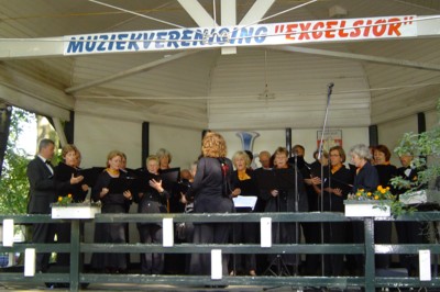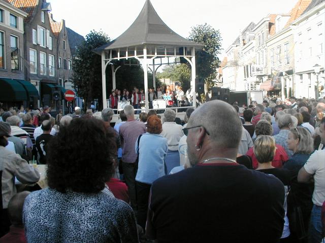 Elburg - Muziektent in Elburg.(2004) Op de tent Shanty koor 'De Iselanders' uit Zwolle.