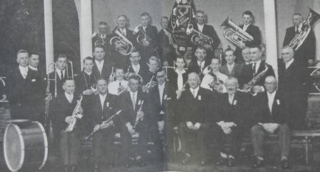 Heino - Muziekver. 'Ons Genoegen' voor en op de toenmalige Muziekkoepel.