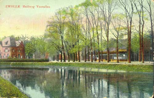 Einde Veerallee 1911 met links villa Spoolderenk, rechts uitspanning Halfweg, (Toen !)