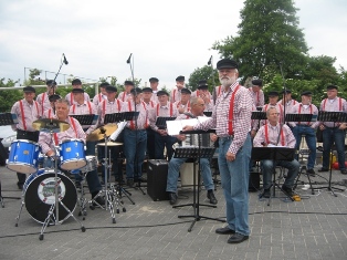 En wat zie je rechts onder aan ? The Green Comets uit Lemelerveld met Flip Jonkman op trompet.